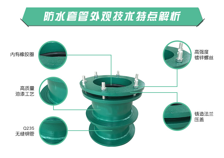 柔性防水套管是適用于管道穿過(guò)墻壁之處受有振動(dòng)或有嚴(yán)密防水要求的構(gòu)筑物的五金管件,一般生產(chǎn)企業(yè)是根據(jù)建筑科學(xué)研究院研制設(shè)計(jì)的S312、02S404標(biāo)準(zhǔn)圖集制造的。柔性防水套管穿墻處之墻壁,如遇非混凝土?xí)r應(yīng)改用混凝土墻壁,將套管一次凝固于墻內(nèi);柔性防水套管施廣泛用于建筑、化工、鋼鐵、自來(lái)水、污水處理等單位。