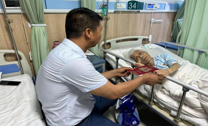 在得知公司一名88歲高齡的老黨員因摔傷住院的情況,周青一行前往臨潼醫院看望,親切詢問她的身體狀況、耐心傾聽他生活上的問題和困難,感謝她為黨的事業工作奮斗多年,鼓勵她樹立戰勝疾病的信心,保持樂觀的心態,盡早康復。