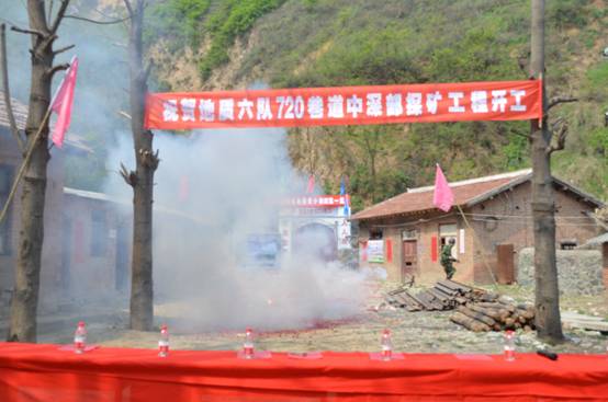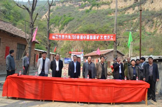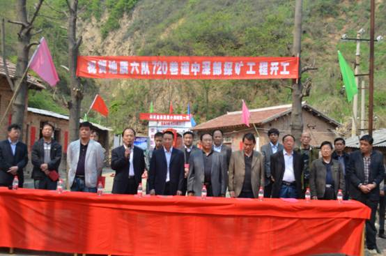 4月18日上午10時30分,我隊潼關整裝勘查合作開發項目(國家整裝勘查小秦嶺第一坑)——720巷道中深部探礦工程開工儀式在潼關榮易溝隆重舉行。省地礦總公司總工齊文、勘查開發部主任馬貴鎖、地質調查研究中心副主任侯滿堂蒞臨了開工儀式并做重要講話。王根寶隊長致歡迎詞,隊黨委書記冀興臣宣布開工。隊領導、中層干部及合作單位施工人員近100人參加了開工儀式。