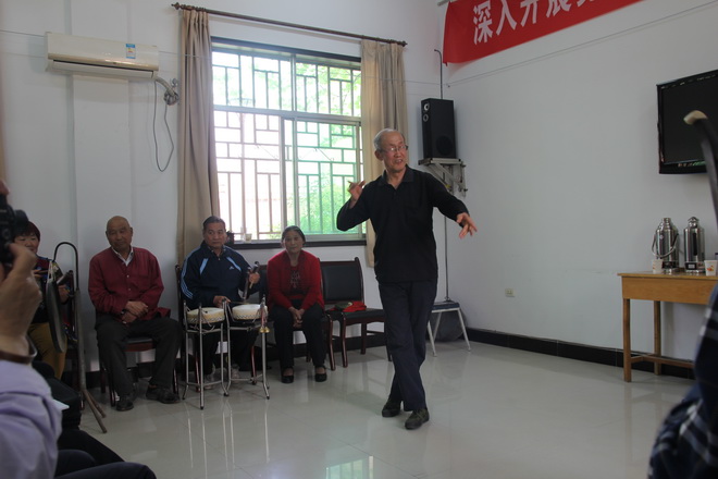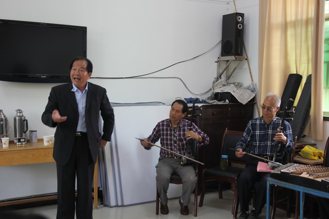 李主任一行來到我隊,顧不上旅途的勞累,直奔正在積極準備的秦腔演出現場。在看到秦“迷”們井然有序的安排和精心的準備后,李主任非常滿意。隨后,秦“迷”們分別就自己拿手的秦腔節目做了匯報演出,國家一級演員任炳漢對每位秦“迷”唱腔、演功及伴奏做一一點評,并肯定每位秦“迷”們對秦腔傳統藝術的熱愛,以及對傳統藝術傳承的執著精神。對基層秦“迷”們能提供這樣的一個活動場所的單位領導表示感謝。在大家的盛情邀請下,任炳漢先生進行了示范表演。