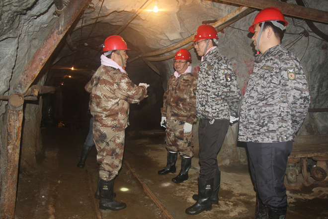 這次檢查是總公司按照省上要求統(tǒng)一部署的非煤礦山安全生產(chǎn)大檢查。上午在與興地公司干部職工座談會上,劉建勤聽取了隊長劉曉東關(guān)于我隊2016年生產(chǎn)經(jīng)營目標任務(wù)完成、安全生產(chǎn)管理情況及隊黨委書記王戰(zhàn)社關(guān)于我隊黨的建設(shè)、和諧穩(wěn)定工作及“兩學一做”學習教育情況工作匯報。隨后劉建勤到興地公司黨支部黨員活動室建檢查指導工作。下午,劉總一行深入到隊興地公司898豎井、185一坑、二坑、850炸藥庫、秦太選廠等重點項目進行了實地檢查,認真檢查了有關(guān)安全生產(chǎn)文件、規(guī)章制度、會議記錄、檢查記錄和安全臺賬等,并深入到898豎井下對該井安全設(shè)施運行情況進行了細致檢查。