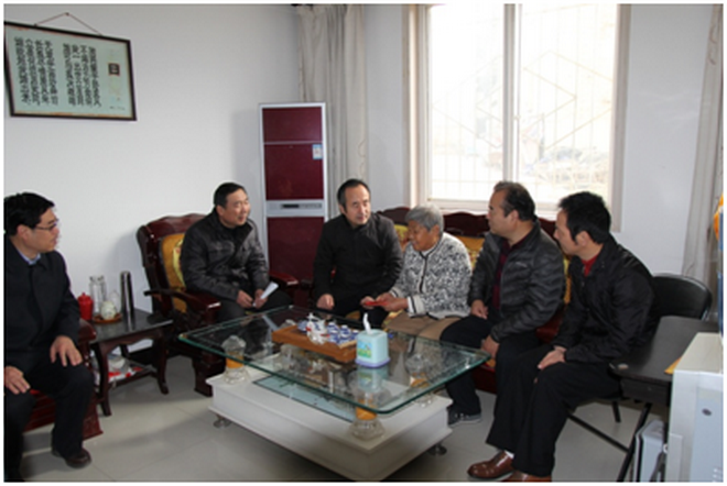 艾亞雄先后到我隊退休地質高工劉春富和楊大奇家中看望慰問。每到一戶,艾亞雄都親切地拉著他們的手,仔細詢問他們目前的生活狀況、存在的實際困難和身體狀況,代表集團公司給他們拜早年。在得知劉春富老伴剛過世不久后,關切地詢問他的身體情況,叮囑他要保重好自己的身體。在楊大奇家中,走到病榻前向其家屬詢問病情進展,叮囑家屬照顧好病人擔子很重,鼓勵她要樹立樂觀生活信心,保重好自己的身體。