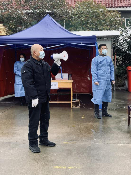 “微信運(yùn)動(dòng)幾萬(wàn)步”,確保每棟樓、每個(gè)人做核酸。受疫情影響,大家不能出門(mén),只能待在家里,然而,六隊(duì)志愿者日行萬(wàn)步卻成為常態(tài)。代王基地設(shè)置了代東社區(qū)核酸點(diǎn),西安基地設(shè)置了明園社區(qū)核酸點(diǎn)。每次核酸檢測(cè)志愿者都要與社區(qū)人員進(jìn)行對(duì)接,協(xié)調(diào)社區(qū)共計(jì)900人左右的核酸隊(duì)伍,維護(hù)現(xiàn)場(chǎng)秩序。“12號(hào)樓一單元的同志,下樓做核酸了”、“15號(hào)樓3單元的同志,下樓做核酸了”,為防止人員聚集,造成交叉感染,院內(nèi)租住的用戶(hù)都是志愿者一樓一樓的叫下來(lái)的。代王基地院子內(nèi)一共10棟樓,360人,西安基地一共4棟樓,290人。為確保不漏一戶(hù)、不漏一人,志愿者每次都要一次次的繞著院子來(lái)回的“喊”。除此之外,志愿者要在核酸檢測(cè)人員來(lái)之前擺好核酸檢測(cè)設(shè)施,拉好警戒線(xiàn),連接網(wǎng)絡(luò)專(zhuān)線(xiàn)、通電、安裝照明燈,一片都不漏的對(duì)場(chǎng)地以及進(jìn)院子的人員進(jìn)行徹底消殺。在核酸檢測(cè)結(jié)束,人員離開(kāi)場(chǎng)地后,志愿者仍然堅(jiān)守在崗位上,因?yàn)樗麄冞€要將醫(yī)用垃圾專(zhuān)員清理拉走,再次對(duì)場(chǎng)地及人員做一次徹底消殺。在維護(hù)核酸檢測(cè)隊(duì)伍秩序時(shí),面對(duì)不理解、抱怨聲,他們選擇用真情感染者每家每戶(hù)。