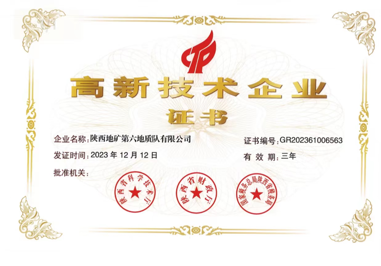 喜報!陜西地礦六隊取得高新技術企業證書