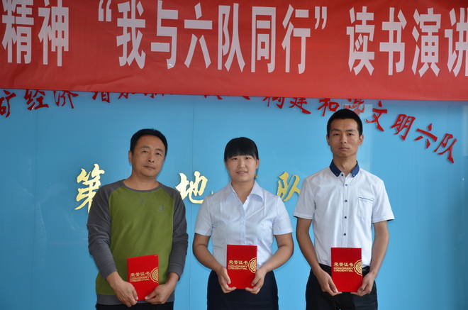 圖為后勤服務中心黃鷹、經濟工作部選手許婷婷、工程公司選手劉科科分獲演講比賽“三等獎”